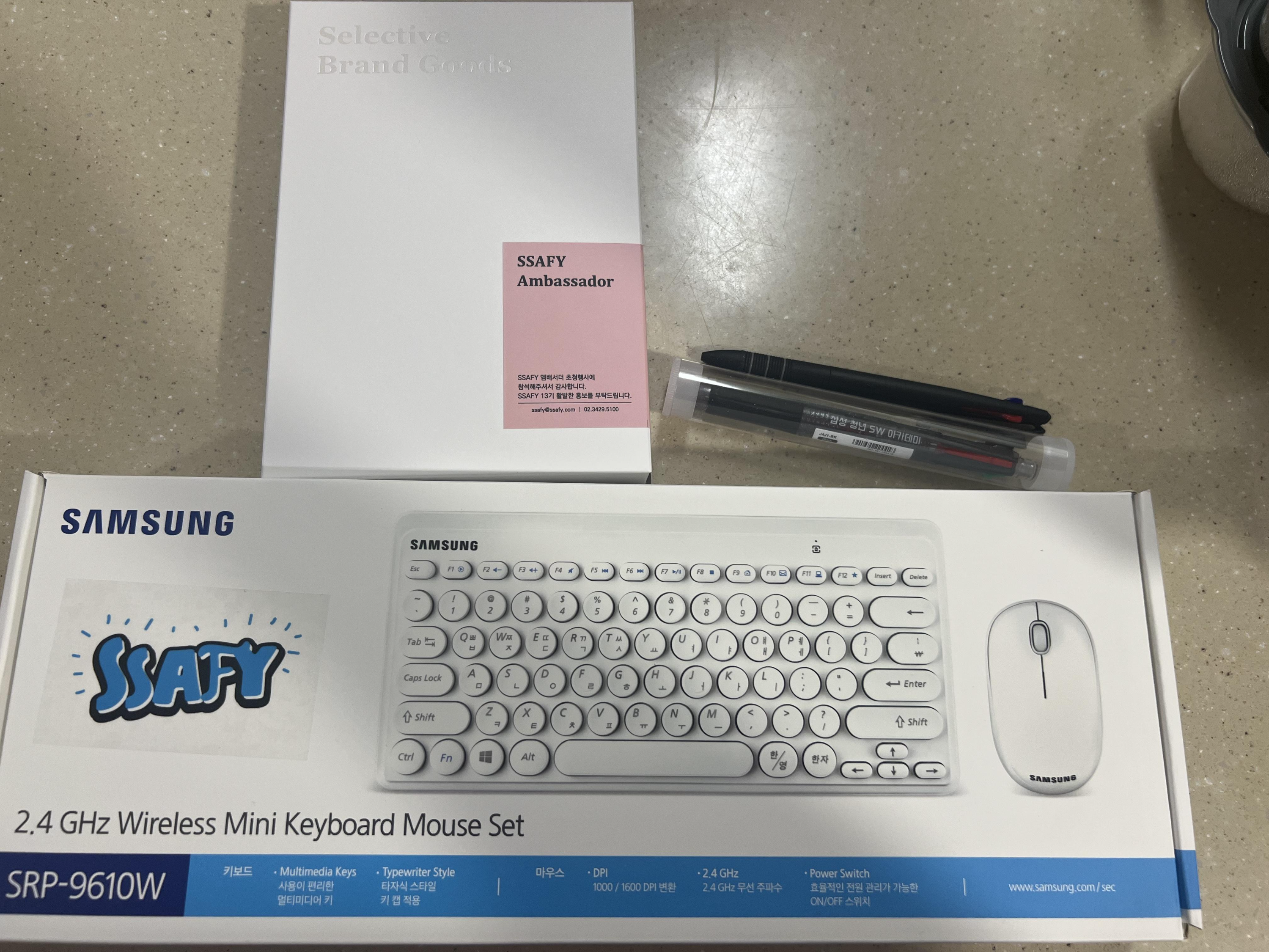 행사가 끝나고 기념품?으로 무선 키보드랑 무선 마우스, 볼펜, 피규어?를 받았다.