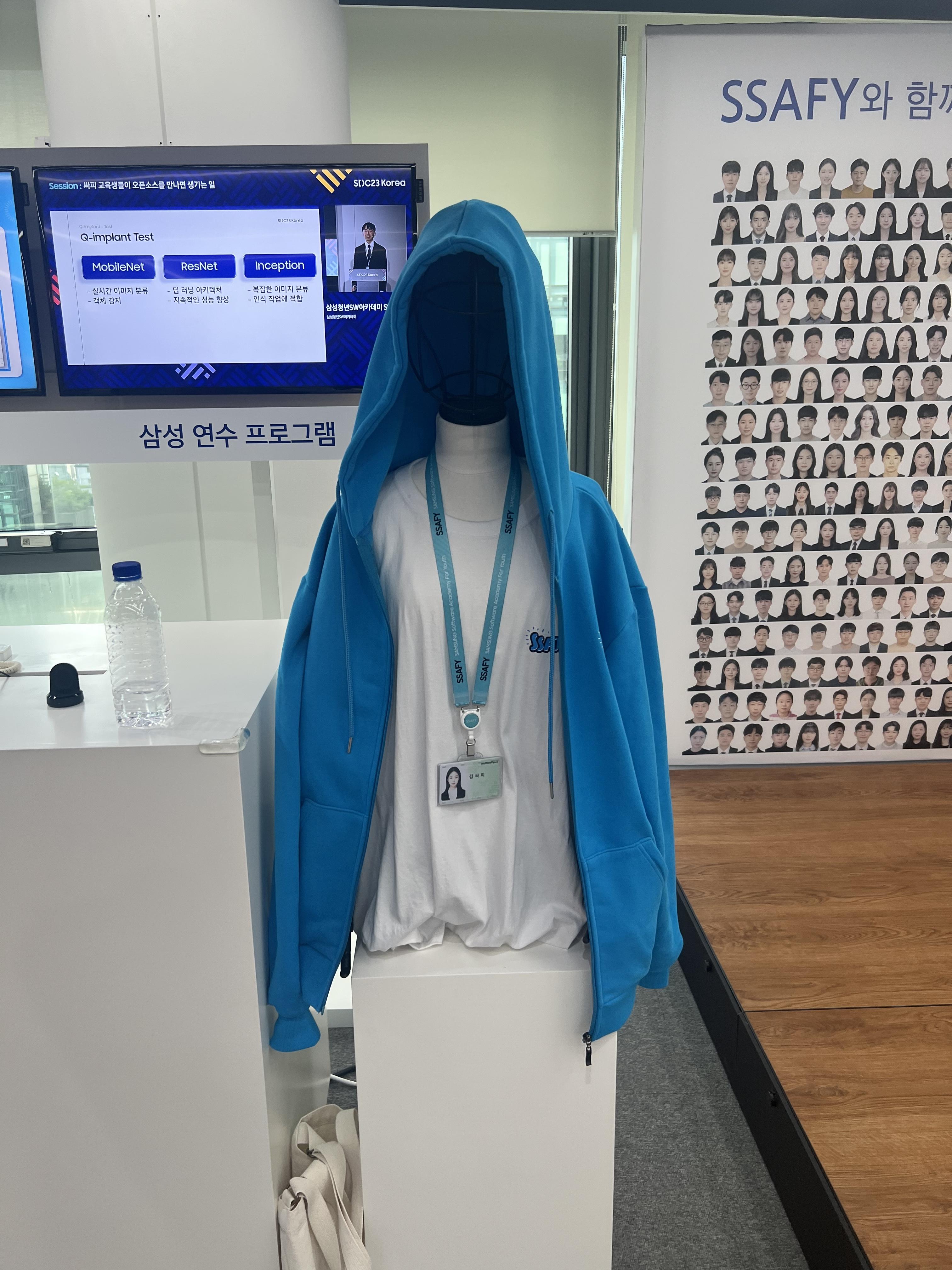 그리고 그 옆에는 싸피를 입과 하면 받을 수 있는 후드집업과 반팔티 그리고 명찰이 있었다.