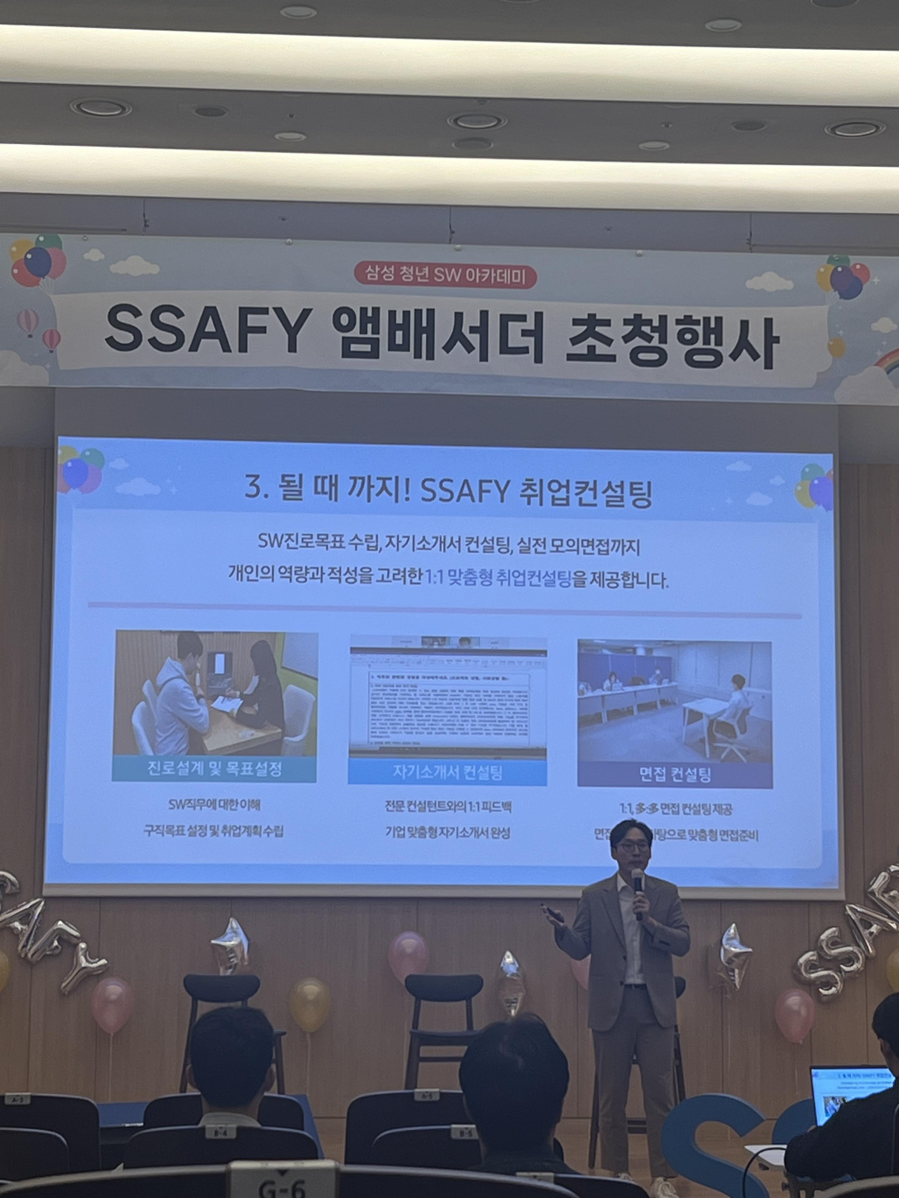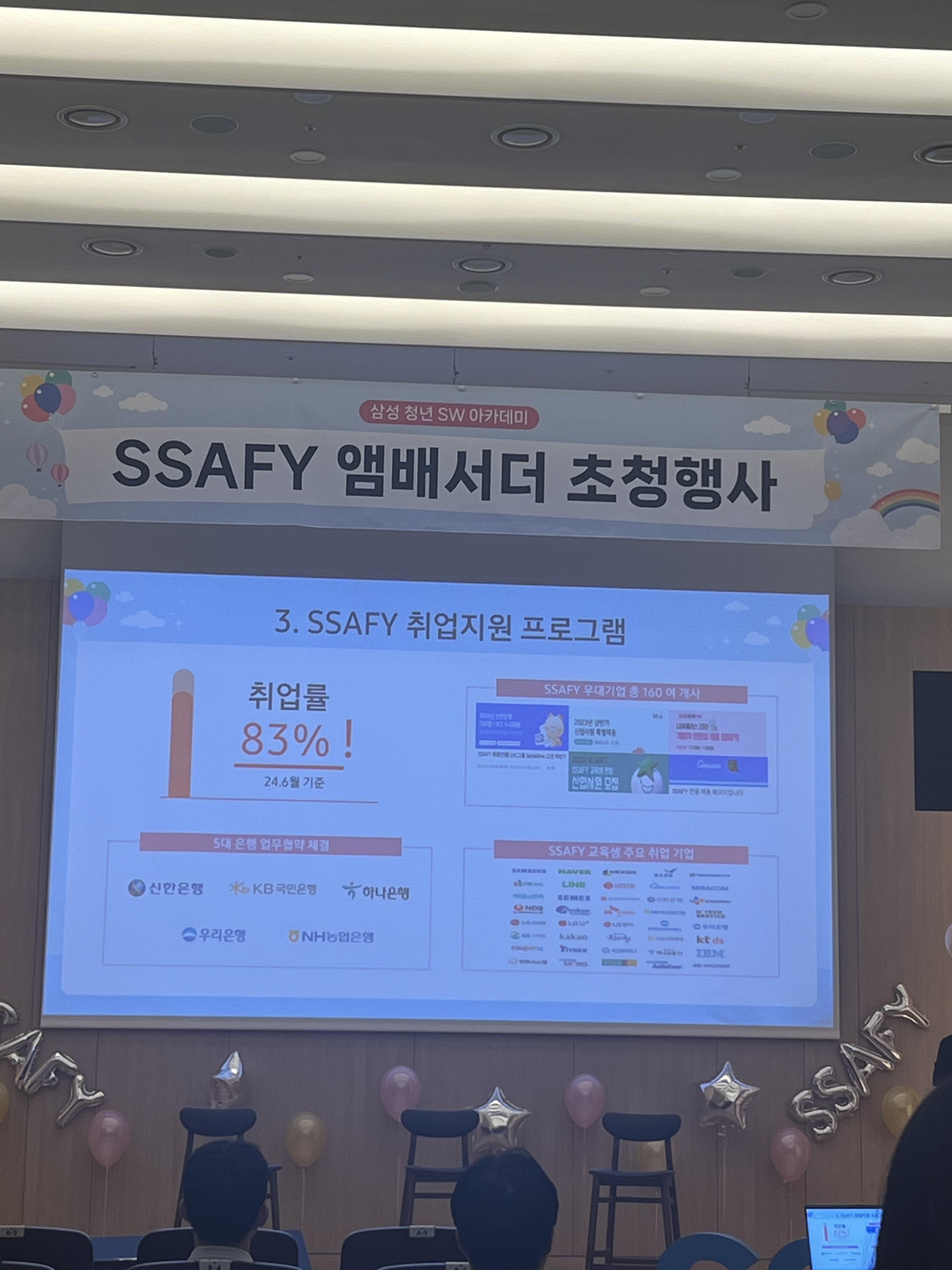 11시부터 시작된 초청행사는 SSAFY에 대한 소개, SSAFY의 취업 지원 프로그램 소개, SSAFY 수료생 분들의 인터뷰